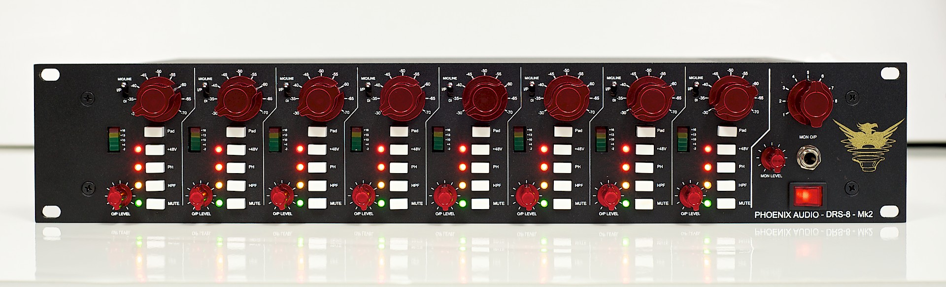 Available in mono (1/2RU or 500-series), stereo (1RU) or in 8-channels (2RU), the Phoenix DRS Mic Preamp/DIs take a modern approach to Class-A circuit design that delivers a wide range of tones without sacrificing the beloved vibe of true Class-A design. The unique DRS circuit can go from ultra-clean sounds suitable for audiophile recordings all the way to the warm, saturated tones reminiscent of the UK's most heralded vintage designs. Versatility and superior sound have made the DRS Preamp/DI a top-tier choice for engineers around the world and a modern day classic.