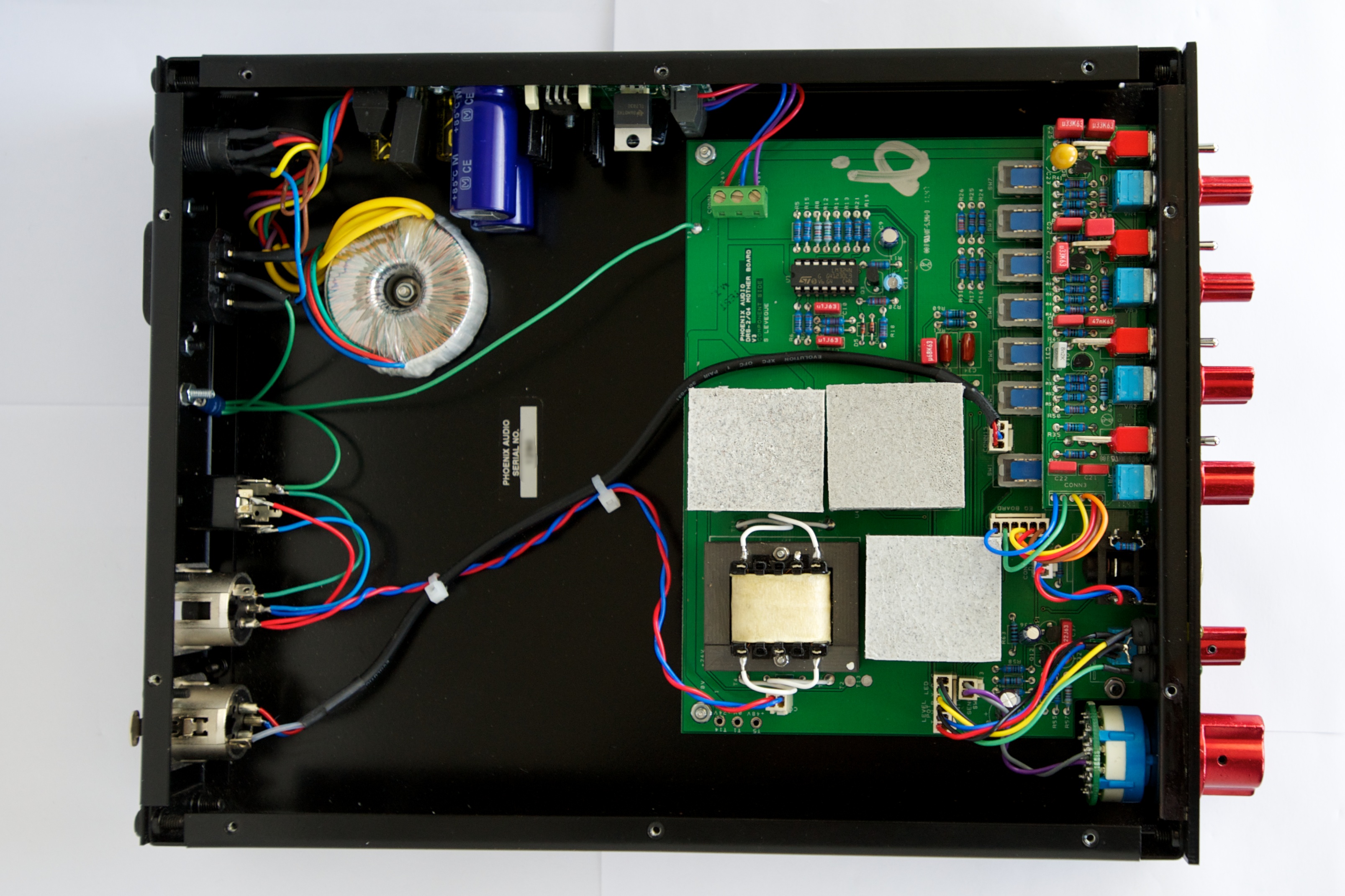 Our custom-wound DB694 output transformer is coupled to Phoenix's proprietary, fully discrete DSOP-2 output amplifier. The DSOP-2 is a direct descendent of the venerable TF1 amp which Phoenix's head-designer, David Rees, developed as an upgrade for vintage Neve modules. Going beyond the TF1, the DSOP2 is the pinnacle of Class-A output circuit design, offering up a smooth transition from ultra-clean to beautifully saturated tones.